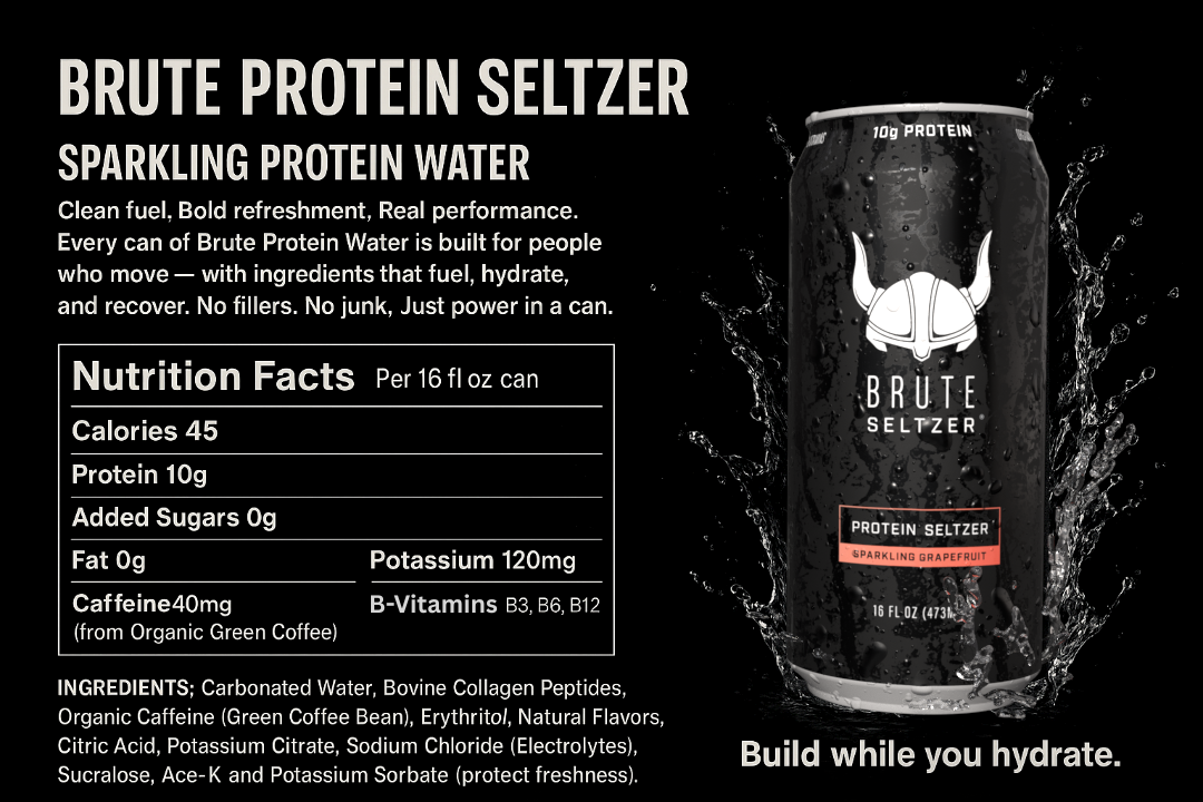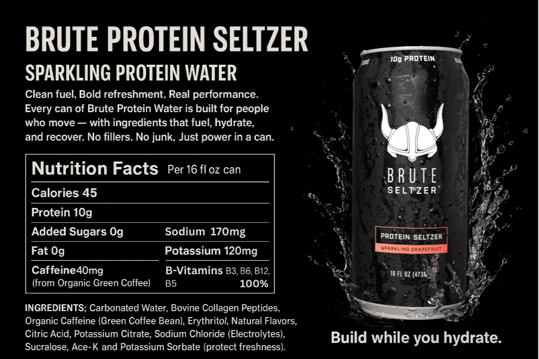 With 10g of clear sparkling protein, Brute Seltzer helps fuel muscle recovery and supports an active, balanced lifestyle.